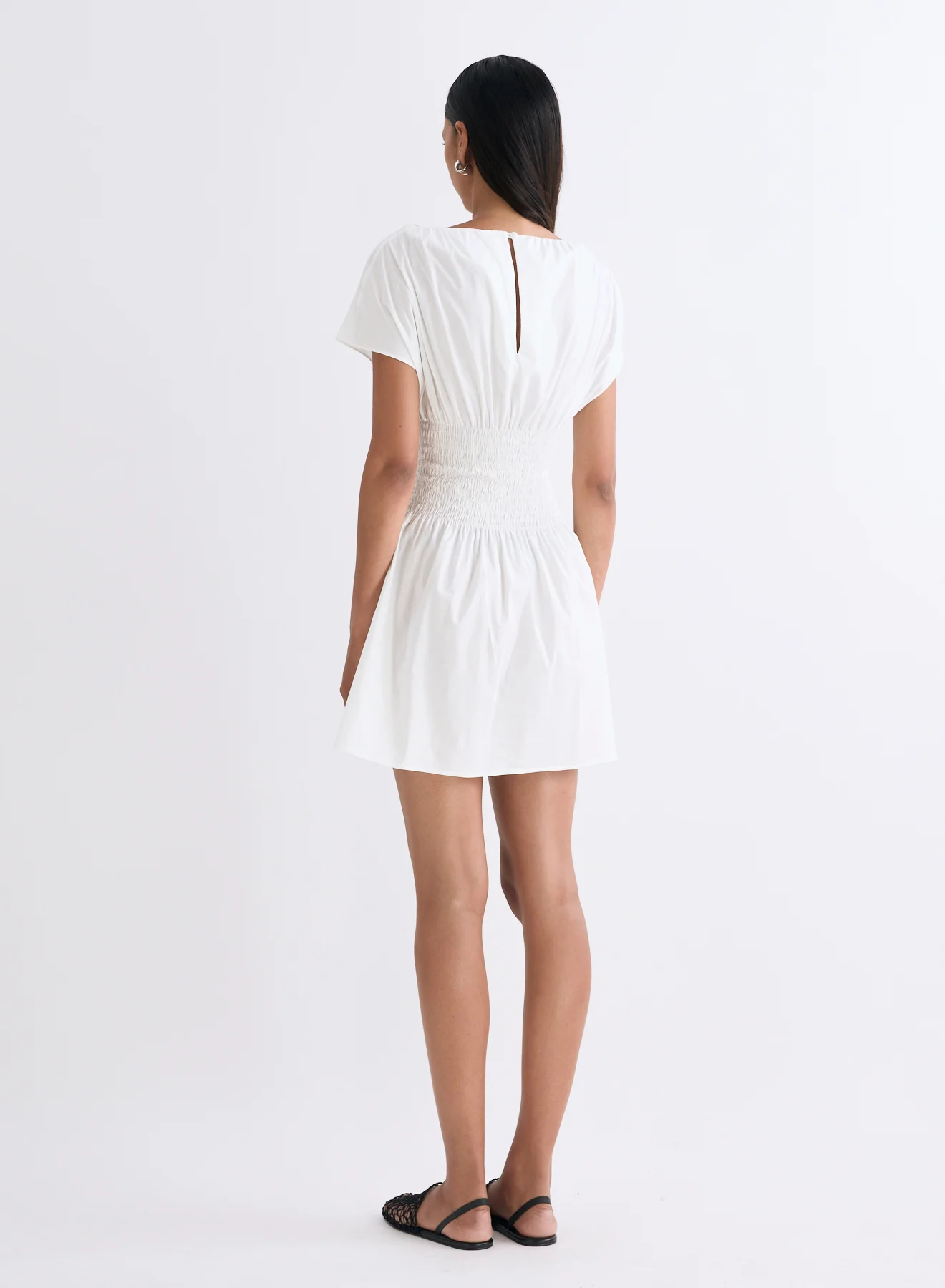The Emily-Mae Dress in Swan is detailed with a wide shirred bodice that starts from under the bust and finishes just below the waist. Crafted in a soft cotton fabrication that is ideal for styling on those warmer weekend days.