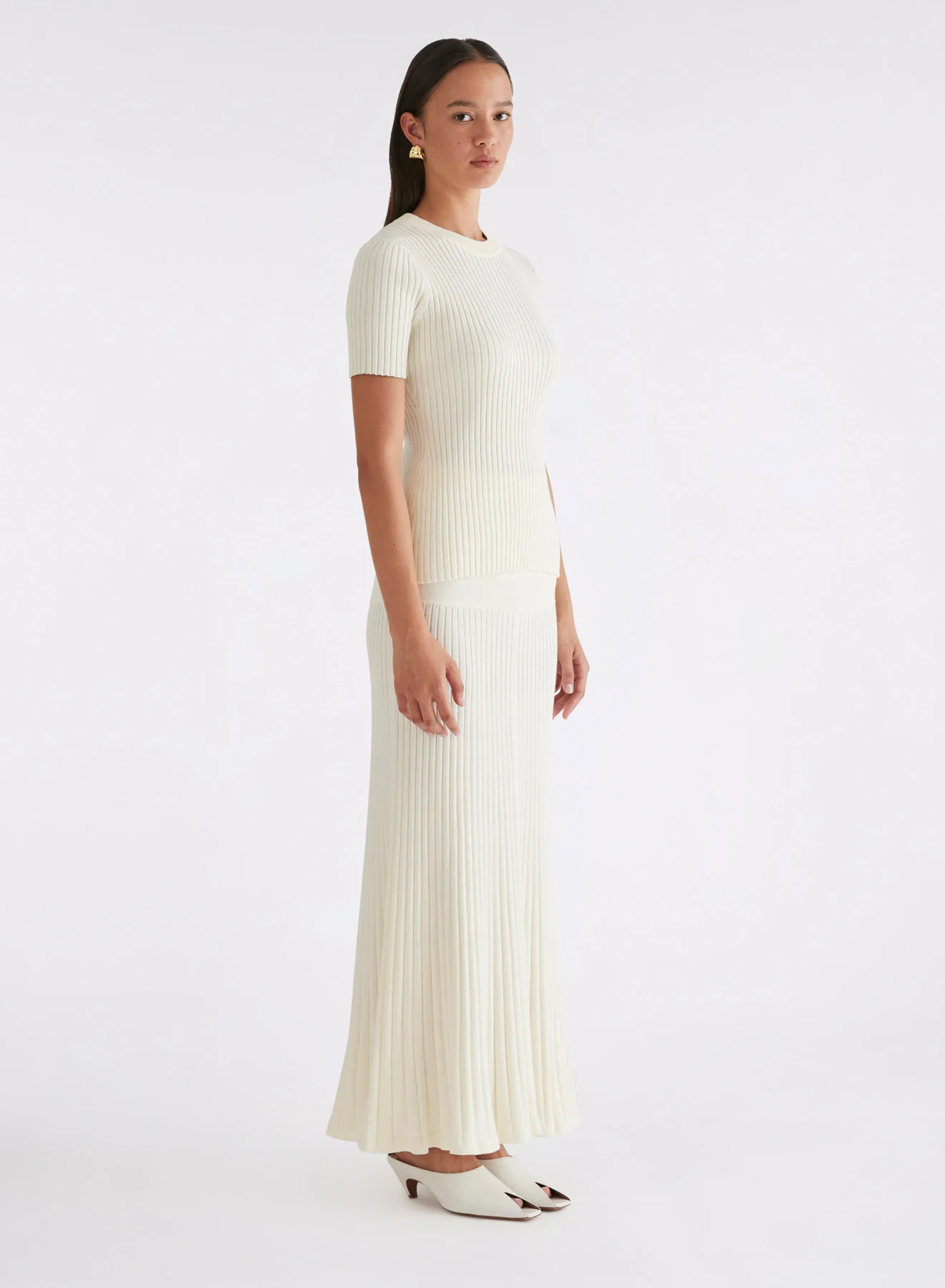 An essential piece begins with thoughtfully chosen materials. Knitted from a soft 100% cotton that gently hugs the frame, this tee features a crew neckline and refined rib texture. Serving as the ultimate layering tool, you can pair with anything from your favourite denim to a flowing skirt and everything in between. Pairs perfectly with the Amber Skirt in Silence or Kori Jeans.Â
