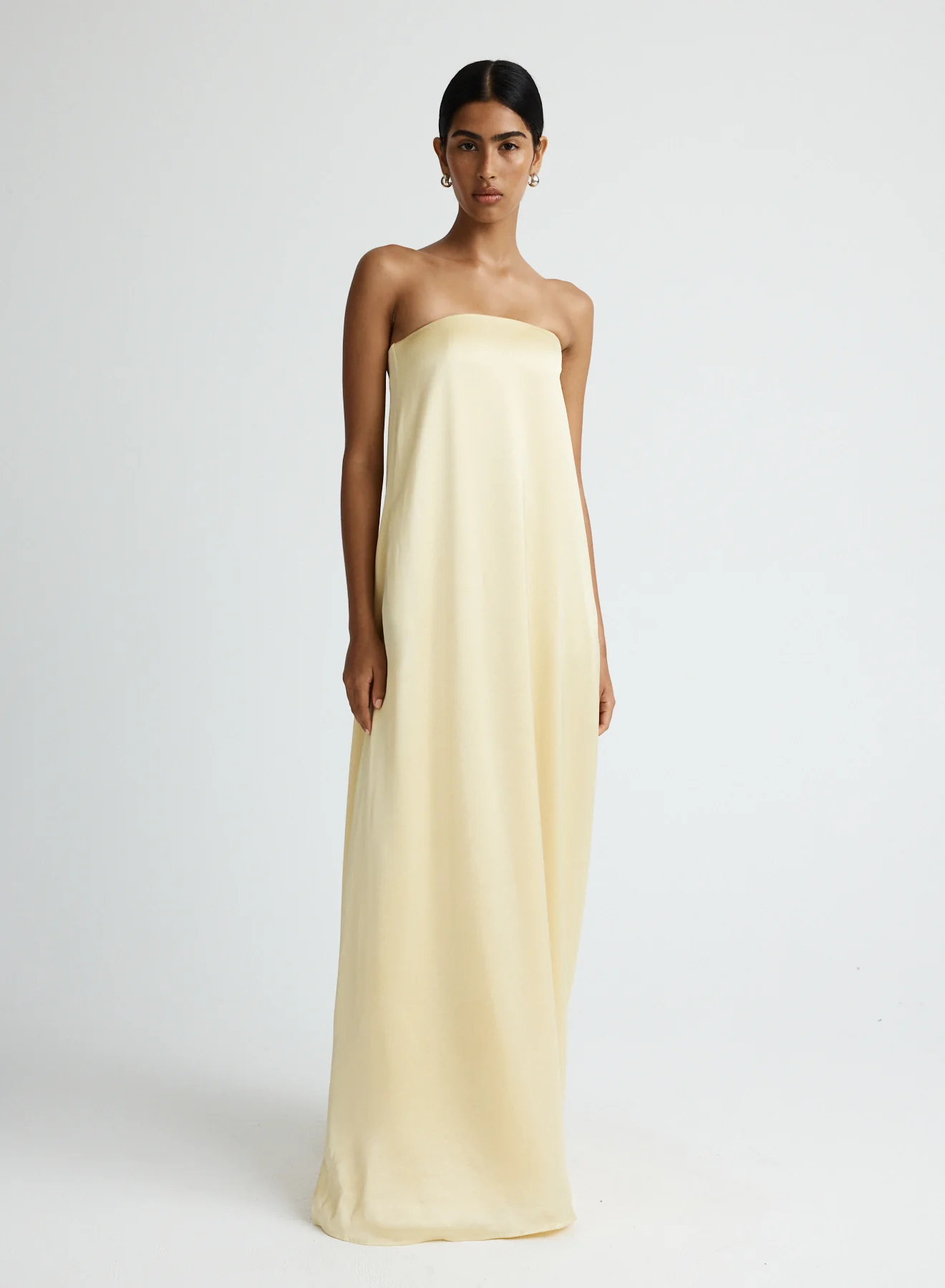 The Delfina Dress in Champagne is a timeless occasion piece to keep in your wardrobe for years to come. Showcasing a feminine strapless silhouette and internal bodice for support and ease of wear. Cut in a soft silky feel fabrication and completed with side pockets.Ā This dress can be styled for summer day time events or more formal evening events.