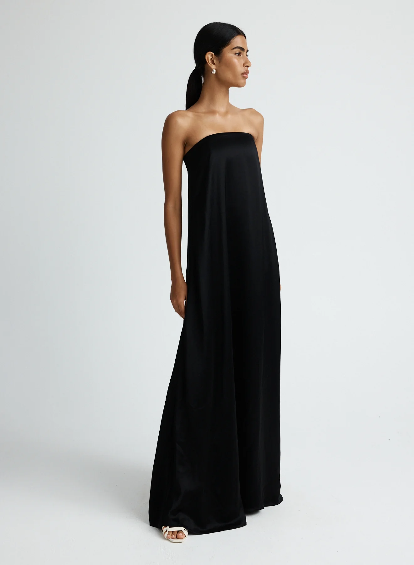 The Delfina Dress in Ink is a timeless occasion piece to keep in your wardrobe for years to come. Showcasing a feminine strapless silhouette and internal bodice for support and ease of wear. Cut in a soft silky feel fabrication and completed with side pockets. This dress can be styled for summer day time events or more formal evening events.