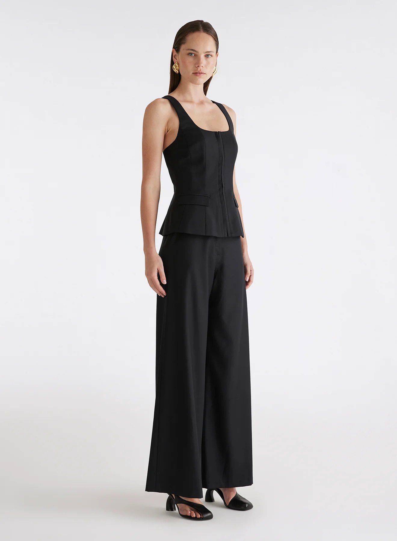 The Lenny Pants in Black are a wardrobe staple. Crafted in a luxurious lightweight wool blend, these wide leg trousers feature a flattering high rise waistline and internal pockets. Showcasing a fluid silhouette and tailored lines the Lenny Pants are versatile for work wear. Style with the Zora Top.