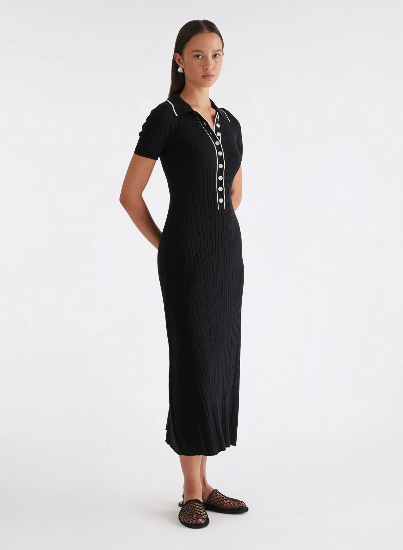 A dress to see you through any occasion, the Penelope Dress is knitted from a soft 100% cotton that gracefully skims the frame. Designed with a polo inspired button placket and contrast trimming, this universally flattering silhouette falls from the hips into a softly flared hem.
